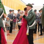 Ebenso prächtig präsentierten sich die amtierenden Majestäten der umliegenden Schützenvereine, bei deren Anblick Oberst Seck sich bestätigt sah: „Für mich hat sich dieses Fest jetzt schon gelohnt“, freute er sich. Dass sich die Arbeit und der Aufwand für so ein Fest lohne, sagte auch die stellvertretende Bürgermeisterin Bernadette Niemeier. In ihrer Festansprache wies sie auf die besonderen Momente hin, die mit einem Schützenfest einhergingen: „Tradition heißt nicht, Asche zu verwahren, sondern Glut am Glühen zu halten. Das Fest muss gelebt werden – und hier wird es das“, sagte Niemeier. Und von der Stimmung her könne das Schützenfest schließlich auch mit dem Ballermann mithalten. Aber: „Was willste denn am Ballermann? Im Hochstift biste besser dran“, zitierte Niemeier das Hochstiftlied von Florian Timm.